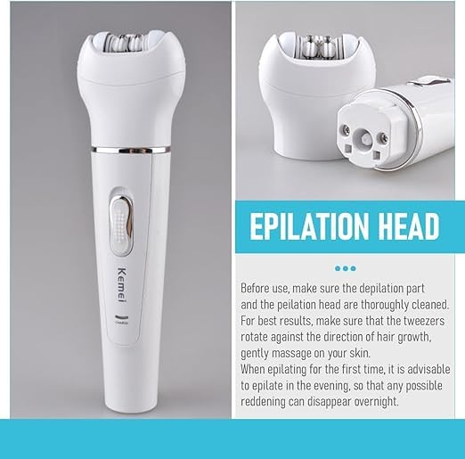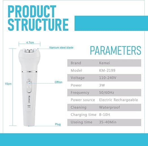 - إزالة الشعر بكفاءة: جهاز إزالة الشعر KM-2199 يزيل الشعر غير المرغوب فيه من الساقين والذراعين بسهولة، مما يمنحك بشرة ناعمة وخالية من الشعر تدوم لأسابيع.