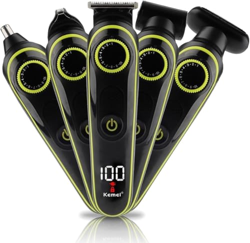 - 1- متعدد الاستخدامات: تأتي ماكينة حلاقة الشعر كهربائية 5 في 1 KM - 696 مع 5 ملحقات مختلفة للعناية بالجسم بشكل كامل.