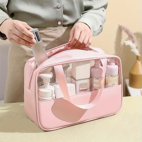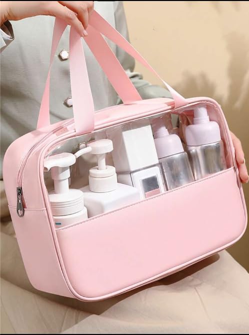 Karen Millen - حقيبة ادوات الزينة الكبيرة من كيه ام سيجني، مناسبة للسفر والمكياج والتخزين، قطعة واحدة، جلد بلاستيك بي في سي، زهري