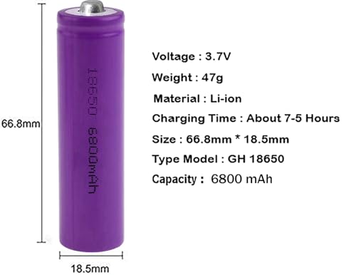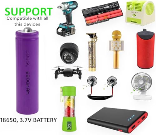 Generic - بطارية ليثيوم ايون محمية قابلة لاعادة الشحن 3.7 فولت 6800mAh متوافقة مع كاميرا الفلاش والضوء والسكوتر الكهربائي والدراجات الكهربائية والالعاب التي تعمل بجهاز تحكم عن بعد والباور بانك ومشاريع البطاريات من كيه ام تكنولوجي - ارجواني