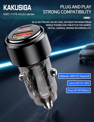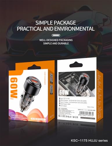 Generic - شاحن بتقنية الشحن السريع 60 وات بمنفذين بي دي من النوع سي وUSB من كيه ام تكنولوجي - لون أسود
