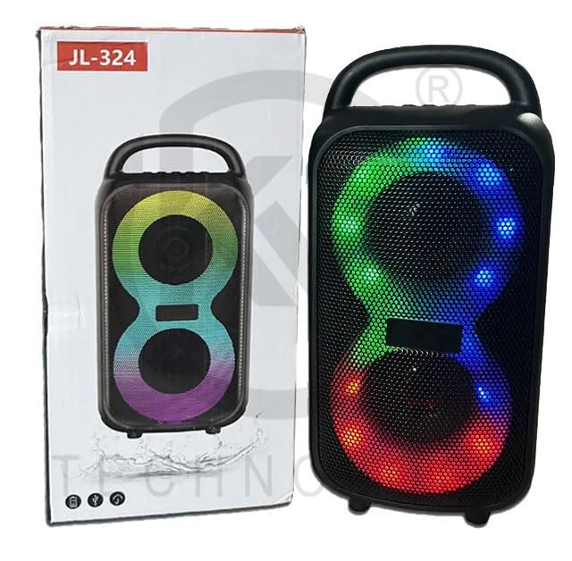 Generic - مكبر صوت بلوتوث لاسلكي محمول JL-324 من كيه ام تكنولوجي مع صوت جهوري ثقيل واضاءة LED RGB، 8 واط، 1500 مللي امبير في الساعة، مع منفذ USB مزدوج - اسود