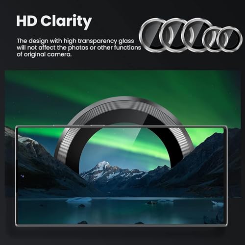 - [تحقق من الطراز الخاص بك] تم تصميم واقي كاميرا جالاكسي S23 الترا / S24 الترا بتقنية كيه ام من الألومنيوم المستخدم في صناعة الطائرات والزجاج المقوى بدرجة صلابة 9 فقط متوافق مع سامسونج جالاكسي S23 الترا / S24 الترا 5G 2023.