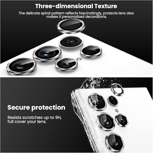 - [حماية يومية] تحمي الحلقة المعدنية الفردية وغطاء الكاميرا المصنوع من الزجاج المقوى بدرجة صلابة 9 عدستك من التلف والخدوش. سطح واقي عدسة جالاكسي S23 الترا / S24 الترا يتميز بطبقة زيت لحمايته من بصمات الأصابع والعرق وبقايا الشحوم. امنح الكاميرا حماية آمنة.