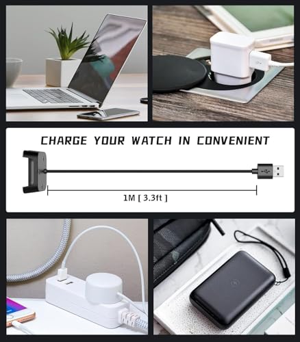 Generic - شاحن متوافق مع ساعة شاومي مي لايت/ريدمي، قاعدة شحن محمولة مع كابل USB بطول 1 م من كيه ام تكنولوجي، لون أسود
