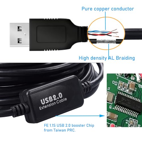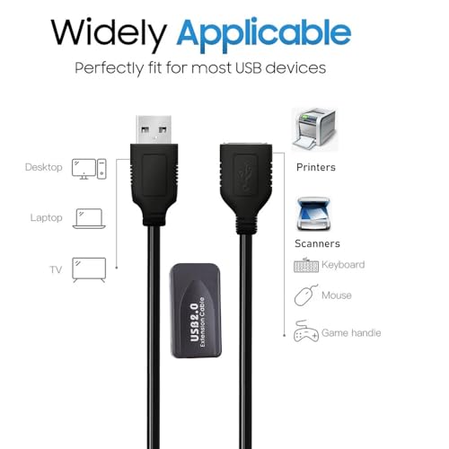 Generic - كابل تمديد USB 2.0 ذكر إلى أنثى لنقل البيانات حتى 480 ميجابت/ثانية متوافق مع القرص الصلب وبلاي ستيشن واكس بوكس وذاكرة فلاش USB وقارئ البطاقات ولوحة المفاتيح من كيه ام تكنولوجي، طول 10 متر، لون أسود