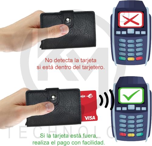 Generic - محفظة جلدية للرجال بتقنية حجب تحديد الهوية بموجات الراديو من كيه ام تكنولوجي، منبثقة بسعة كبيرة، حافظة بطاقات معدنية، مشبك نقود، التقاط سريع للبطاقات، مضادة للسرقة، رفيعة، صلبة، رياضية، معاصرة (أسود)