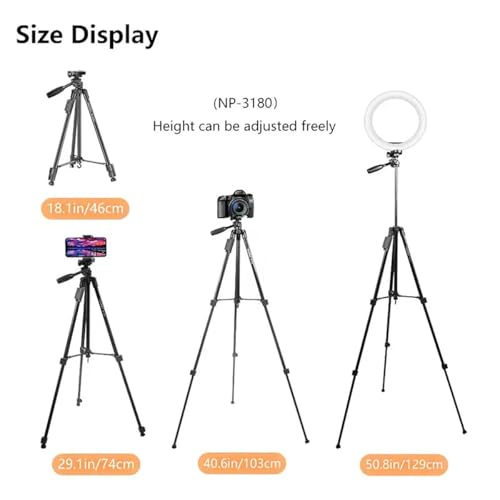 KM TECHNOLOGY - حامل ثلاثي القوائم للتصوير نيفو NP-3180 من كيه ام تكنولوجي، حامل أرضي لكاميرا دي اس ال ار بارتفاع 1.36 م لسطح المكتب - لون أسود