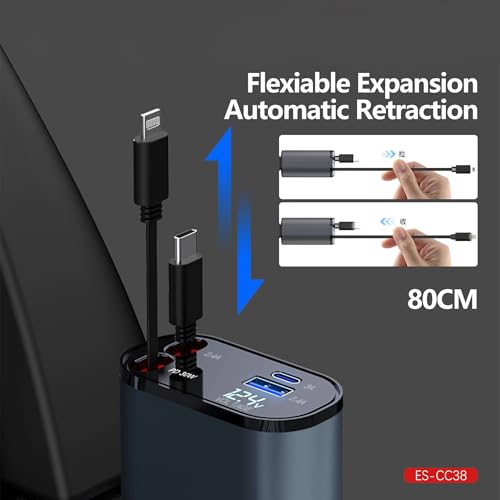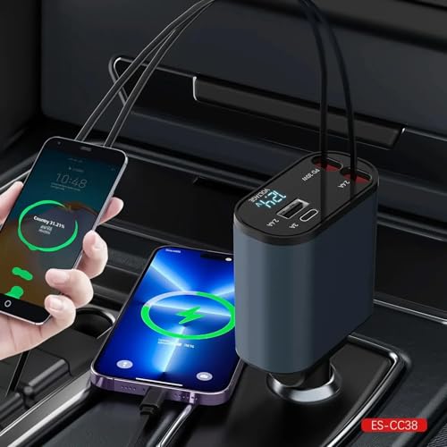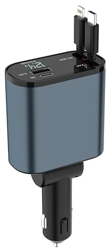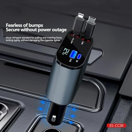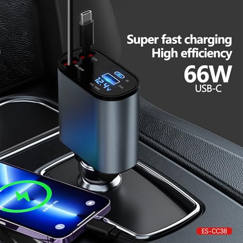Generic - شاحن سيارة قابل للسحب محول شحن سريع 4 في 1 بقوة 66 وات مع شاشة رقمية متوافق مع السيارات والشاحنات من كيه ام تكنولوجي