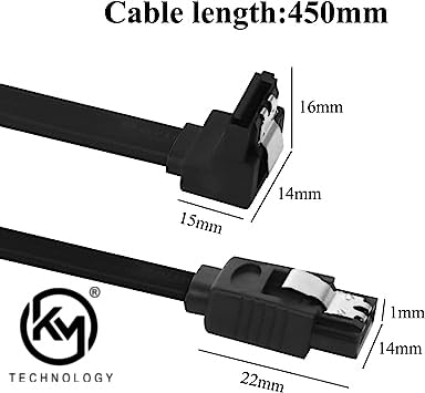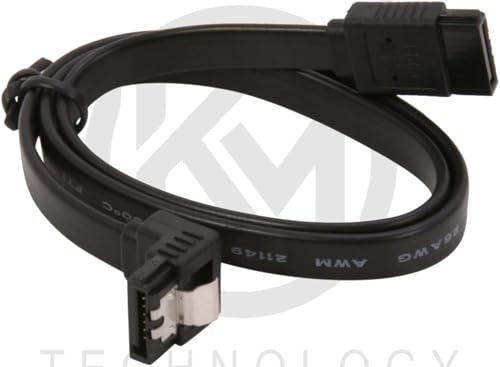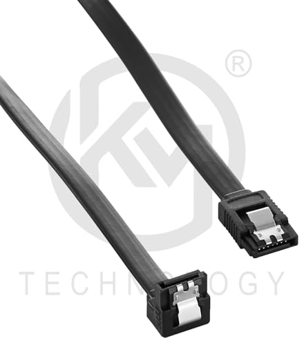 KM TECHNOLOGY - كابل ساتا للقرص الصلب بطول 40 سم من كيه ام تكنولوجي وصلة بفيشة بزاوية 90 درجة لهارد HDD - SSD - أقراص DVD - CD ذاكرة ROM - أسود