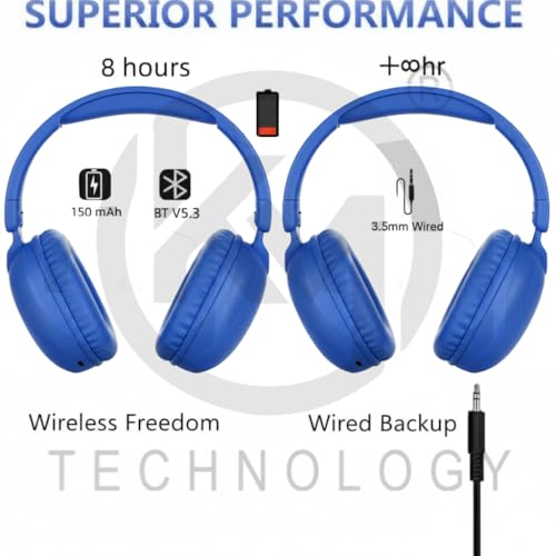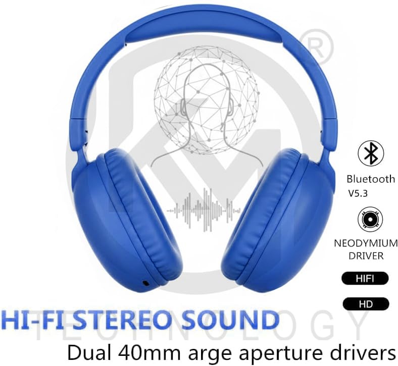 Generic - سماعة راس ستيريو لاسلكية سودو SD-1102 من كيه ام تكنولوجي، بلوتوث V5.3 مع ميكروفون خارجي وتدعم بطاقة SD، فوق الاذن - ازرق