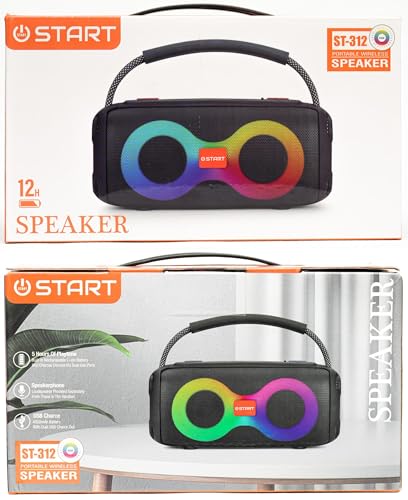 Generic - مكبر صوت بلوتوث لاسلكي محمول START ST-312 من كيه ام تكنولوجي مع صوت جهوري ثقيل واضاءة LED، 8 واط، 4000 مللي امبير في الساعة، مع منفذ USB مزدوج - اسود