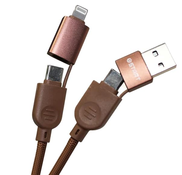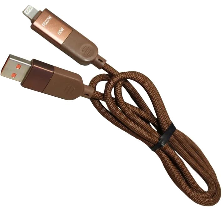 Generic - KM Technology Start ST-A017 4 in 1 Super Fast Charging Convertible Fast Data Cable, 3.9ft USB C USB A, 60W, Compatible With iPhone/iPad/MacBook Pro/Airpods/Samsung/Android - Brown