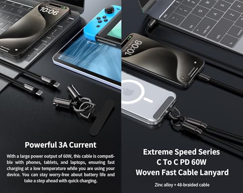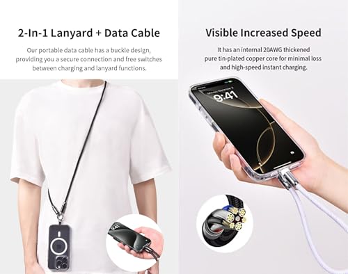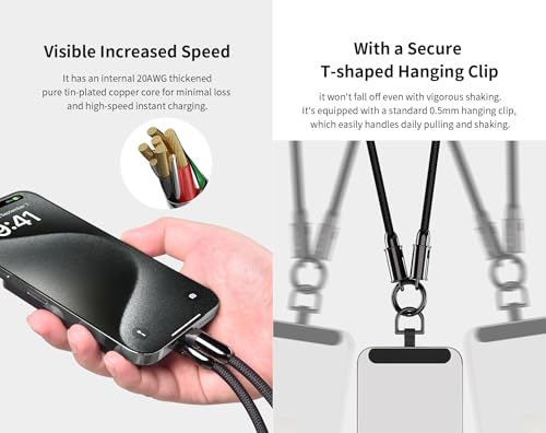 - يحتوي هذا الكابل على طرف سهل التركيب، وبفضله يتحول الكابل العادي إلى حبل مع حلقة تثبيت. يتميز الهيكل الذي يُثبَّت بالكبس بأنه متين ولا يوجد خطر من فك الحبل أثناء الارتداء. تتضمن المجموعة دلاية لربط الموبايل.