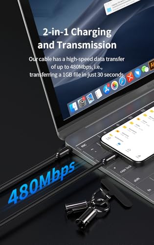 Generic - شاحن بتقنية الشحن فائقة السرعة من سلسلة اكستريم سبيد 2 في 1 من كيه ام تكنولوجي، كابل توصيل الطاقة بحبل، من PD نوع C إلى IOS iph (0.3 متر/30 سم) 60 واط 5 امبير 480 ميجابت في الثانية بحد أقصى، لون أسود
