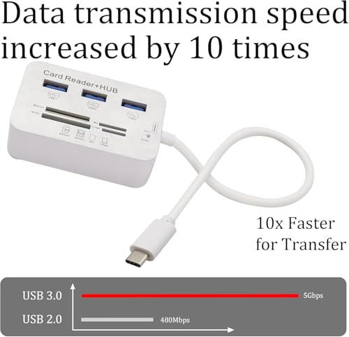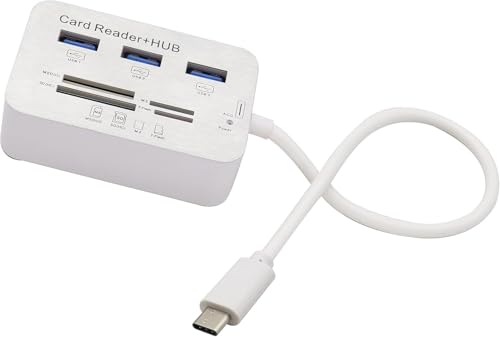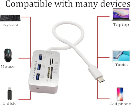Generic - قارئ بطاقات نوع سي مع 3 منافذ USB، قارئ بطاقات ذاكرة خارجي عالي السرعة يدعم (MS، Micro SD، SD/MMC، M2، TF) من كيه ام تكنولوجي