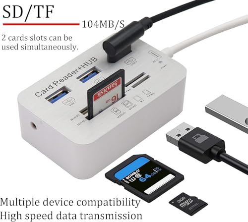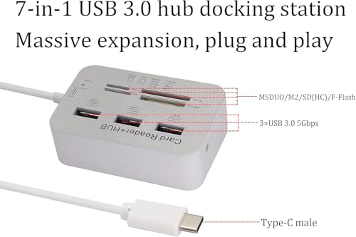 - ✓التوافق -- متعدد الوظائف: موزع USB 3.0 بثلاثة منافذ مع قارئ بطاقات ام اس/ام اس برو دو، اس دي/ام ام سي،M2، شريحة مايكرو SD (بطاقة تي اف).