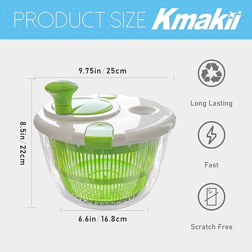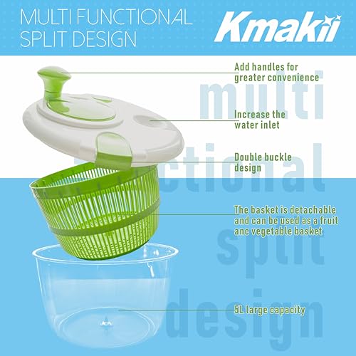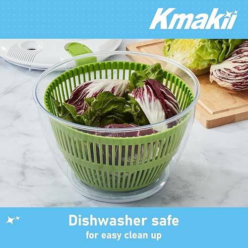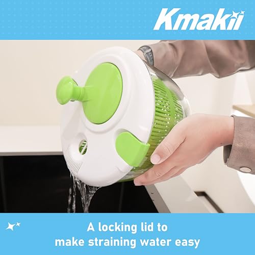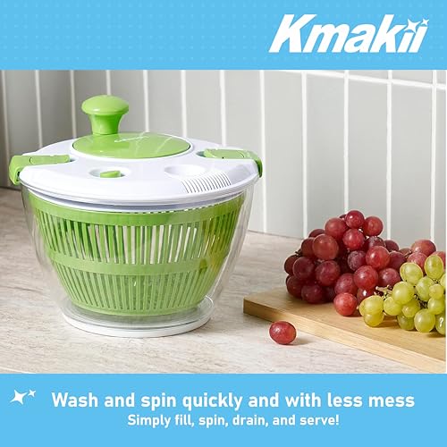 KMAKII - صفاية سلطة قابلة للدوران، أداة لغسل السلطة، مجفف سلطة سعة 5 لتر، مصفاة تجفيف فواكه منزلية، غسالة سلطة يدوية للمطبخ من كيه ماكي، أخضر