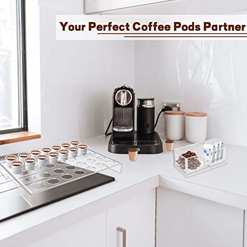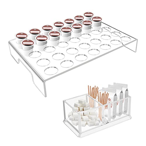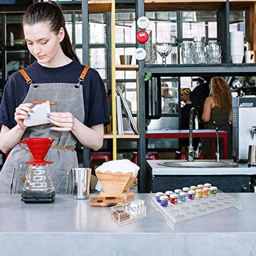 KMOTASUO - حامل كبسولات قهوة أكريليك شفاف مع حامل عبوات السكر، منظم كبسولات القهوة كموستو حديث، منظم مسطح لتخزين كبسولات القهوة للمطبخ والمكتب