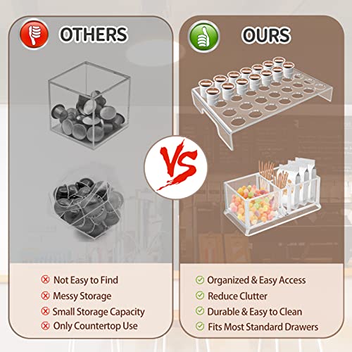 - 【رفيق مثالي لكبسولات القهوة】: منظم مصنوع من مادة الأكريليك الشفافة، لذا فهو متين وسهل التنظيف، تصميم مشقوق على كلا الجانبين مما يجعل من السهل إخراجه من الدرج.