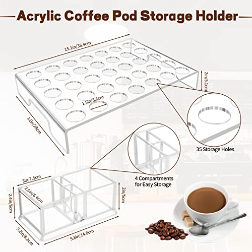 - 【حامل كبسولات قهوة بسعة كبيرة】: مجموعة من قطعة واحدة مكونة من منظم أكريليك أنيق، يحمل كل منظم ما يصل إلى 35 كبسولة، مصمم للحفاظ على كبسولات قهوتك المفضلة مرتبة ومنظمة وسهل الوصول إليها.