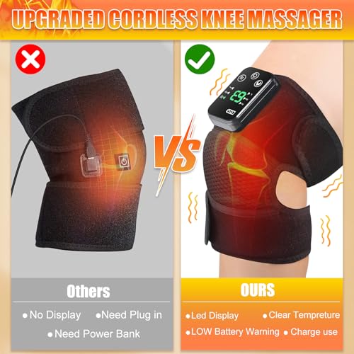 - 🔥【جهاز تدليك الركبة اللاسلكي】جهاز تدليك الركبة لاسلكي ومحمول، يعمل ببطارية مدمجة قابلة لإعادة الشحن بسعة 4000 ميلي امبير في الساعة، مما يسمح لك بوضعه بسهولة على المنطقة المصابة والاستمرار في أي نشاط. مزود بشاشة ليد واضحة وسهلة الاستخدام، وأزرار لمس ذكية تجعل استخدام جهاز تدليك الركبة بسيطًا ومريحًا. يمكنك استخدامه أثناء العمل أو النوم أو تنظيف الغرفة، وهو مناسب لأي مناسبة.