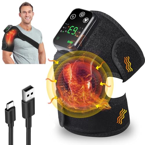 TERRIFI - مدلك الركبة مع الحرارة والاهتزاز - دعامة ركبة حرارية لاسلكية 3 في 1 ولف للكتف - وسادة تدفئة لتخفيف الام والكتف والكوع - تخفيف الانسجة العميقة من تيريفي تعمل بالبطارية