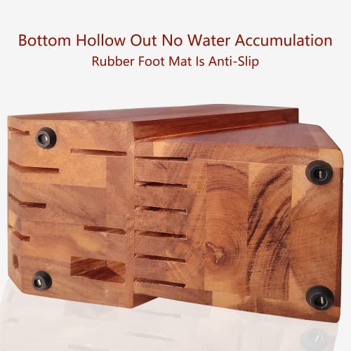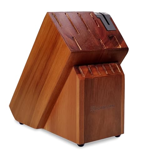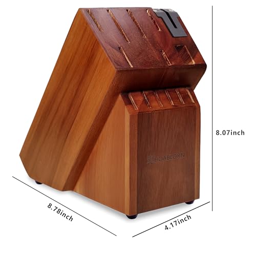 ChefHoablorn - حامل سكاكين من خشب الاكاسيا مع مبراة بدون سكين، حامل سكاكين عالمي، 15 فتحة سكين لتخزين السكاكين، حامل سكاكين المطبخ، حامل سكاكين