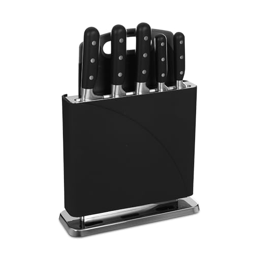 Generic - طقم حامل سكاكين، 5 قطع مع لوح تقطيع وحامل، فولاذ مقاوم للصدأ بمقبض بلاستيكي، باللون الأسود