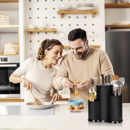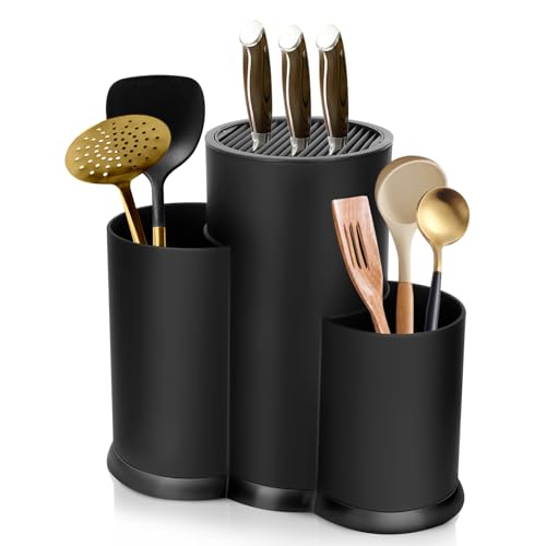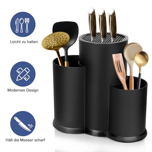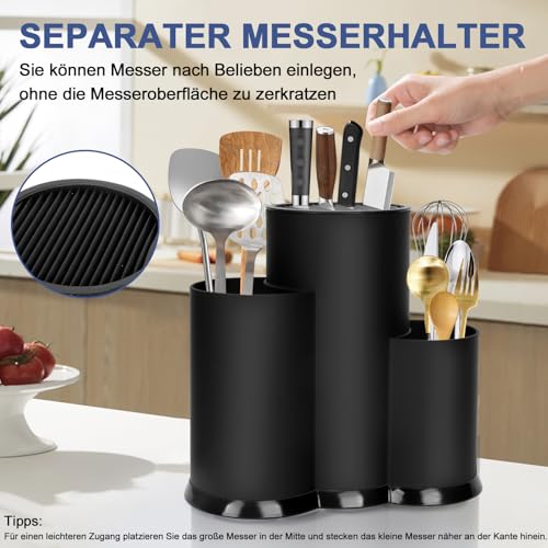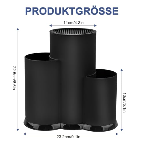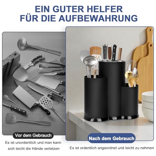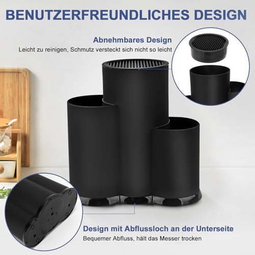 Carseatty - حامل سكاكين بدون سكاكين، حامل سكاكين 3 في 1، مكعبات سكاكين غير مجهزة، حامل سكاكين مناسب لجميع سكاكين المطبخ، أسود