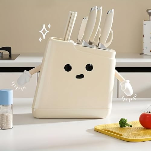 Generic - منظم سكاكين - حامل ادوات مطبخ بلاستيكي كبير لسطح الطاولة مع فتحات متعددة للاواني والقطاعات، يحافظ على مطبخك مرتبًا وواسعًا