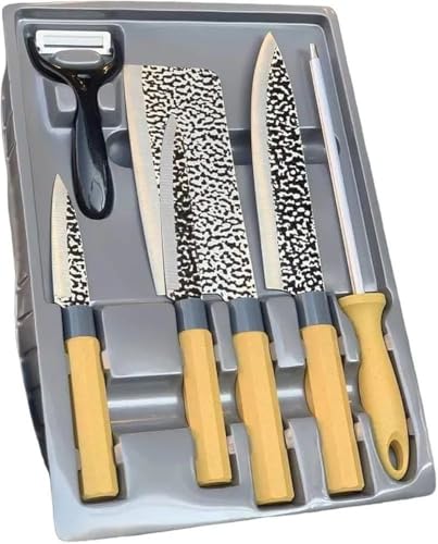 Generic - مجموعة سكاكين بمقبض أصفر، سكاكين مطبخ احترافية مع شنطة تخزين، 6 قطع