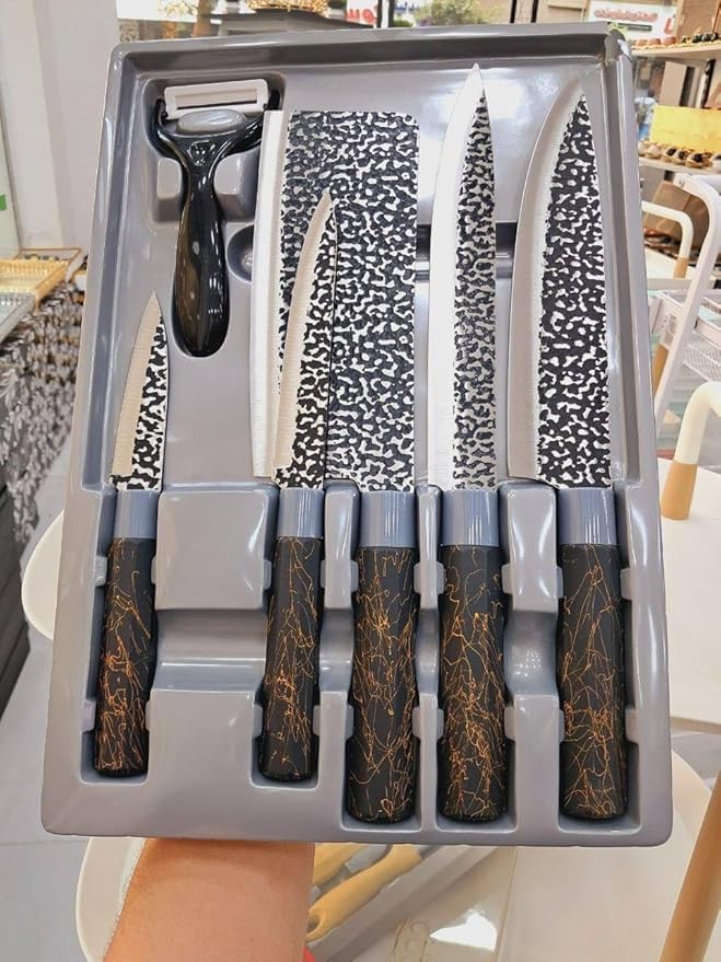 - متعدد الاستخدامات: تتضمن المجموعة أحجامًا مختلفة من السكاكين مناسبة لمهام المطبخ المتنوعة، بدءًا من تقطيع الخضروات الدقيق ووصولًا إلى نحت اللحوم.