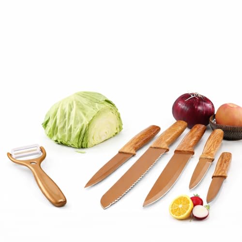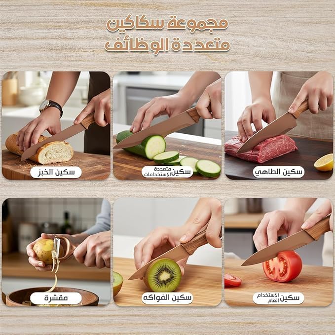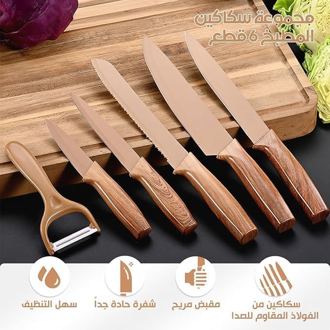 Generic - طقم سكاكين مطبخ من الستانلس ستيل مكون من 6 قطع مع مقشرة وشفرات غير لاصقة لتقطيع الخبز للاستخدام اليومي