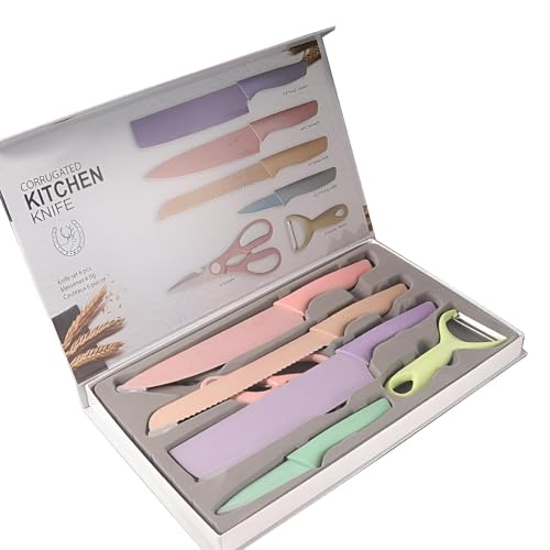 Generic - طقم سكاكين، طقم سكاكين مطبخ فاخر مكون من 6 قطع بشفرات سيراميك مسننة لسهولة التقطيع وتحضير الطعام