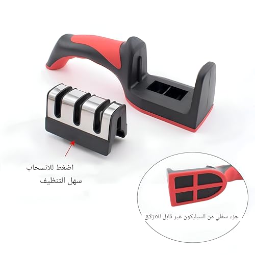 - بفضل تصميمها المريح، فإن مبراة السكاكين هذه مريحة للحمل وسهلة التشغيل، سواء كنت تستخدم اليد اليمنى أو اليسرى. تضمن القاعدة المطاطية غير القابلة للانزلاق الثبات أثناء عملية الشحذ، مما يسمح بقبضة آمنة وتحكم استثنائي. يعزز هذا التصميم المدروس تجربة المستخدم ويجعل عملية الشحذ سريعة وفعالة، مما يضمن أنه يمكنك شحذ سكاكينك بسهولة دون المخاطرة بأي إصابات في اليد أو الحوادث.