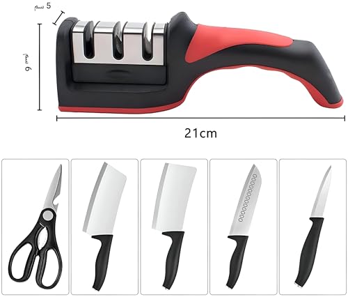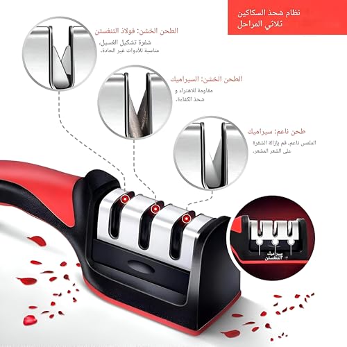 Generic - مسن سكاكين - أداة فاخرة من الفولاذ مقاوم للصدأ مع 3 فتحات لشحذ الماس والسيراميك والتنجستن، مثالية لإصلاح وتلميع شفرات المطبخ (قطعة واحدة)