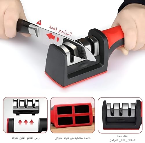 - مبراة السكاكين متعددة الاستخدامات هذه مناسبة لأنواع مختلفة من السكاكين ذات الحواف المستقيمة، بما في ذلك سكاكين الطهاة وسكاكين التقطيع وسكاكين المطبخ الصغيرة وسكاكين الفاكهة، مما يجعلها ضرورية لأي عشاق الطهي. ومع ذلك، من المهم ملاحظة أن هذه الأداة غير مصممة للسكاكين أو المقصات المسننة، مما يجعلها موفرة للوقت للغرض المقصود. من خلال إحياء سكاكين المطبخ الجديدة أو القديمة من خلال هذه الأداة الموثوقة، يمكنك ضمان أعلى أداء وأمان، مما يسمح بكفاءة
