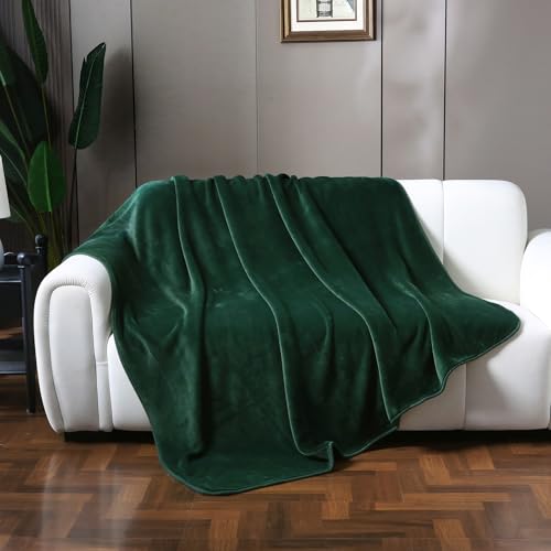 MERRYLIFE - بطانية محبوكة سميكة من صوف مخملي ميلكي للكنبة، بطانية مخملية فائقة النعومة مزخرفة وملونة للسفر والسرير والمكتب (1.5 × 2.03 م، أخضر)