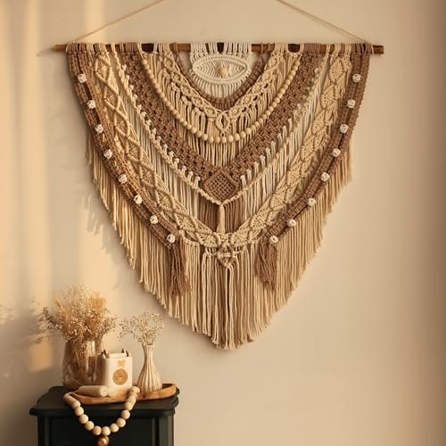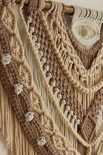 - ✨قطعة مميزة لحائطك: بفضل العقد المعقدة ومزيجها المهدئ من الألوان الطبيعية البيضاء والبنية الناعمة، تكمل مجموعة واسعة من أنماط ديكور الحائط، من البوهو إلى المعاصر، فهي بمثابة خلفية مثالية لأريكتك أو اللوح الأمامي أو الردهة، مما يعزز الجمال من خلال الأنماط الهندسية ذات الطبقات والشراشيب
