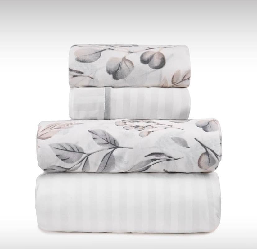 Generic - طقم ملاية سرير كبير 6 قطع ملاية استيك لسرير 160 ، 180 ارتفاع 30 سم وعدد 2 خدادية بالاضافة الى ملاية مسطحة مقاس 240×260 وعدد 2 خدادية قطن 100% من نوتس اند كو