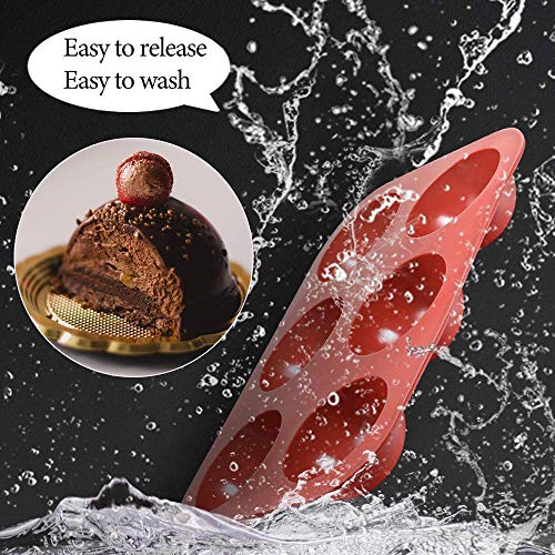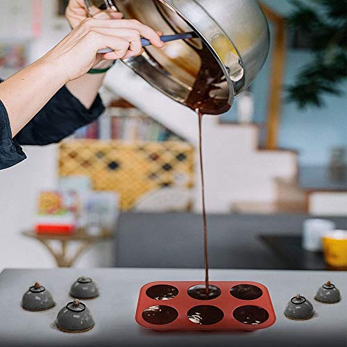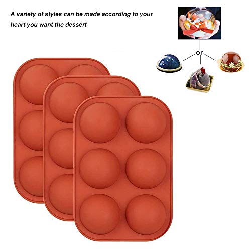 KOBSAINF - قوالب خبز سيليكون نصف كروية 6 فتحات من كوبساينف لتحضير كيك الشوكولاتة والجيلي - 3 قطع، برتقالي
