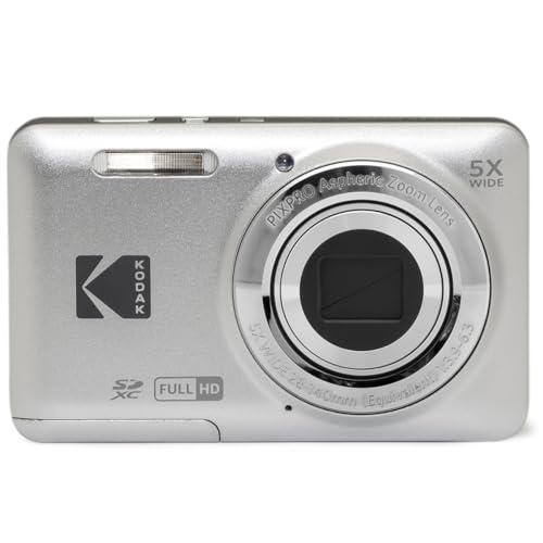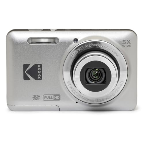 KODAK - كوداك كاميرا رقمية FZ55-GRY من بيكسبرو، مستشعر سيموس 16 ميجابكسل، تكبير بصري 5 اضعاف، زاوية واسعة 28 ملم، 1080 بيكسل فل اتش دي، كاميرا فيديو LCD مقاس 2.7 انش، رمادي