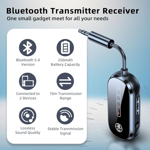 - 【بلوتوث 5.4 مطور】يعتمد على أحدث تقنية بلوتوث 5.4 لضمان اتصال أكثر استقرارًا وأسرع. نطاق تغطية محول البلوتوث ايه يو اكس هو 10 أمتار، ولا تتأخر الإشارة لتجلب لك تجربة استماع سلسة، وتدعم وظيفة إعادة الاتصال التلقائي. (وظيفة استقبال البلوتوث: قم بتوصيل هاتفين محمولين؛ وظيفة إرسال البلوتوث: قم بتوصيل زوجين من سماعات البلوتوث