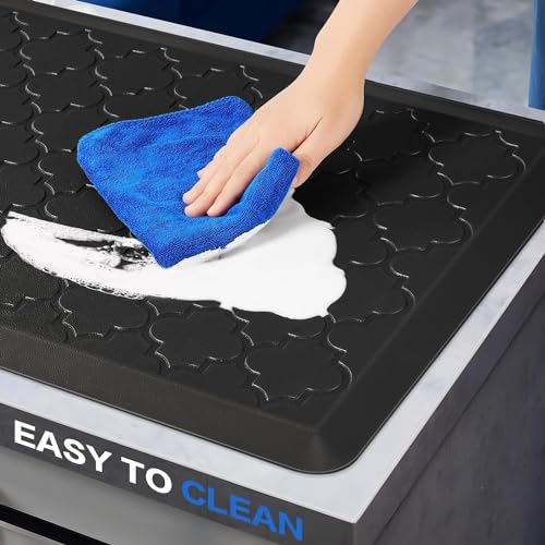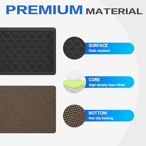 - 【سجادة قائمة مبطنة فائقة】سجادة المطبخ هذه مصنوعة من فوم بلاستيك بي في سي الفاخر. يبلغ سمك سجادات المطبخ المبطنة 1.27 سم. البطانة الناعمة مع الارتداد القوي توفّر دعماً وطاقة مستمرة، حيث يمنحك الوقوف عليها إحساساً كما لو كنت تمشي على سحابة ثابتة ولكن ناعمة.