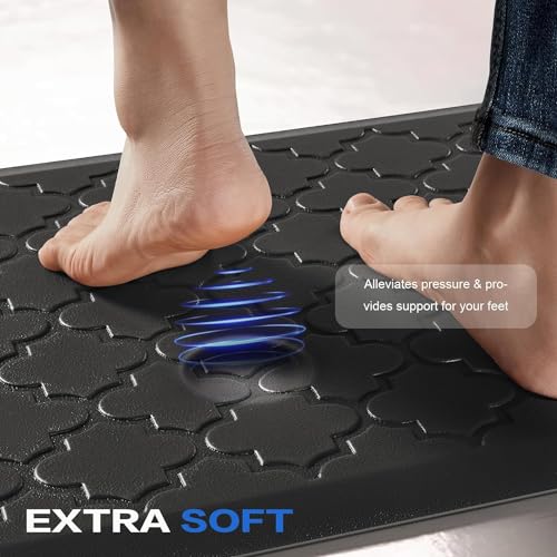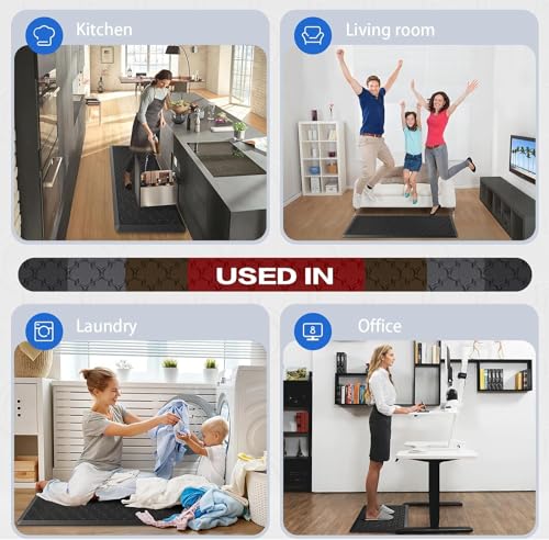 Koeay - سجادة مطبخ مبطنة مضادة للتعب والإجهاد للأرضيات، سجادة مطبخ سميكة 1.27 سم، سجادة مكتب قائمة غير قابلة للانزلاق ومقاومة للماء للمكتب وحوض الغسيل وغرفة الغسيل من كوي، لون أسود، مقاس 44 × 75 سم