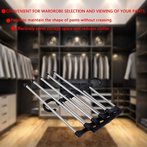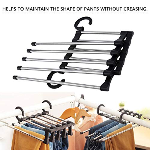- تخلص من مشاكل تعليق بناطيلك مع شماعة البناطيل المبتكرة متعددة الوظائف ذات 5 اتجاهات.