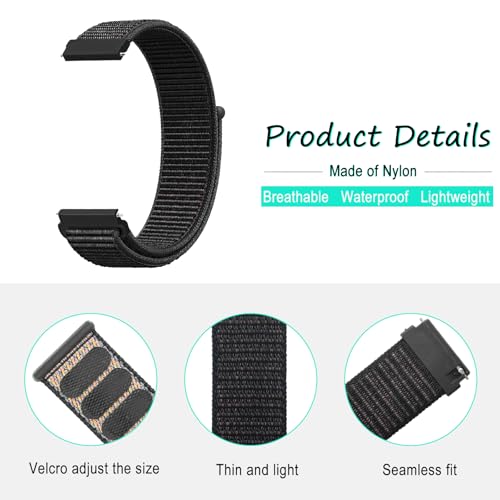 KoGiio - سوار حلقة رياضية من كوجيو متوافق مع هواوي ووتش التيميت و شاومي إس 3 و هواوي جي تي 5، مصنوع من النايلون باللون الأسود للجنسين مقاس 22 ملم
