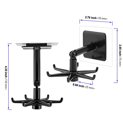 KOHAND - حامل ادوات المطبخ ذاتي اللصق من كوهاند، خطاف دوار 360 درجة، خطاف قلاب عمودي ذاتي اللصق، حامل ادوات المطبخ مع 6 خطافات، حامل ادوات تعليق للحمام وخزانة المطبخ، 6 قطع، اسود