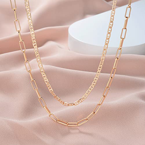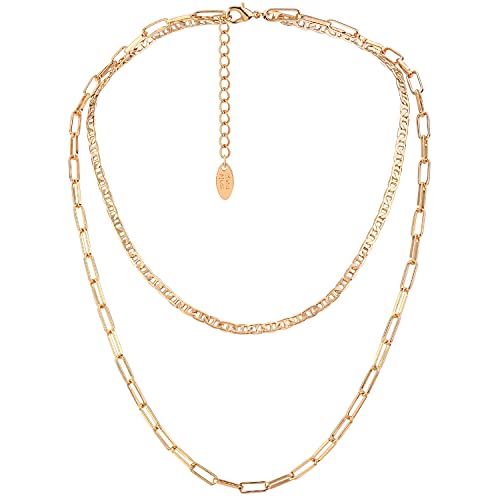 KOHOTA - عقد مع سلسلة للنساء مطلي بالذهب عيار 14 مكون من عدة طبقات وبتصميم مشبك ورق مميز من كوهوتا
